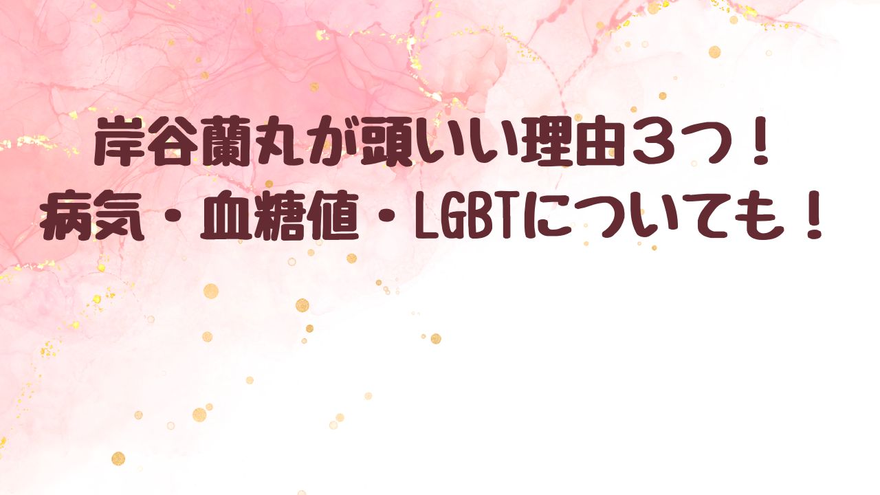 人物 岸谷蘭丸が頭いい理由3つ!病気・血糖値・LGBTについても!