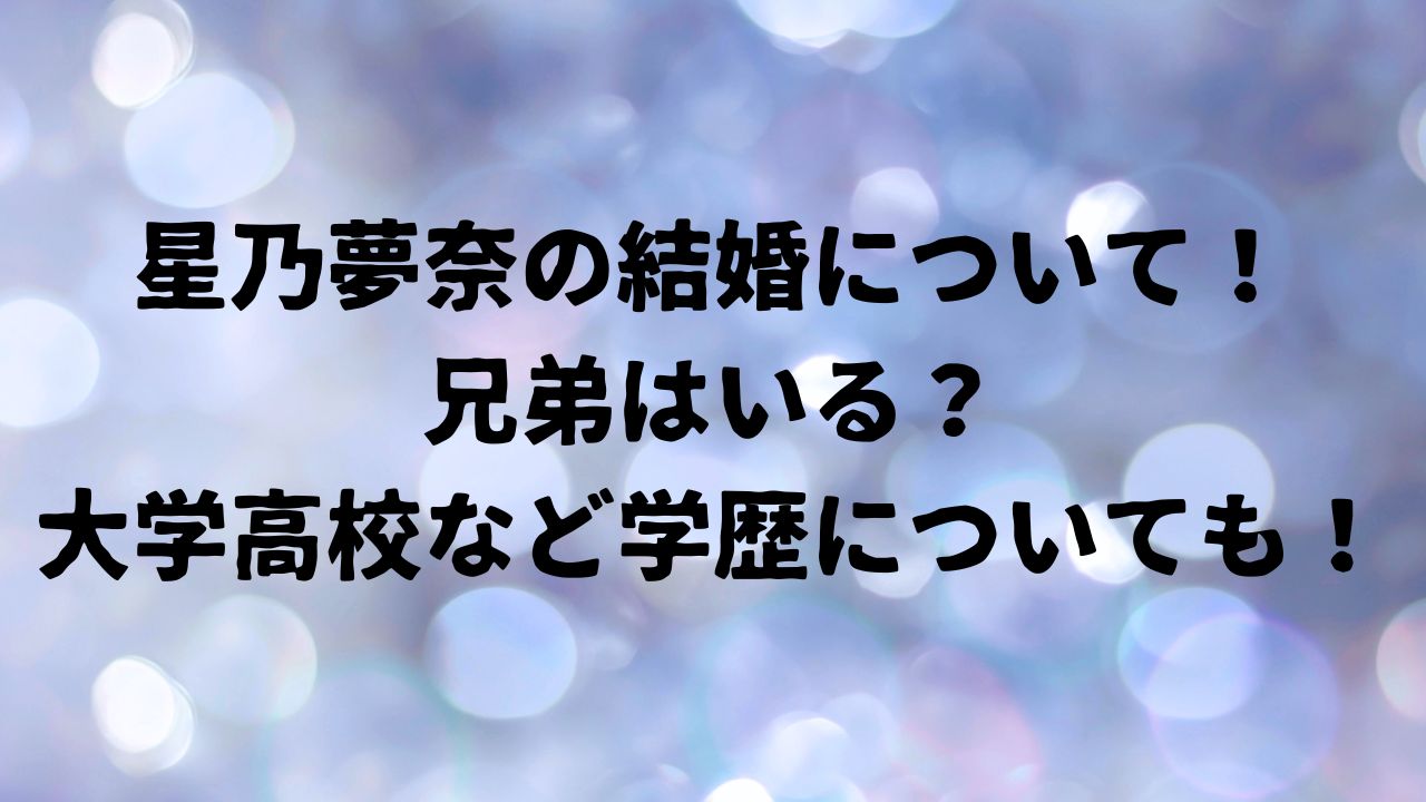 星乃夢奈の結婚について!兄弟はいる?大学高校など学歴についても!