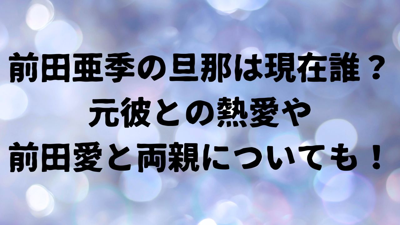 特に、前田亜季さんの旦那さんは誰なのか、現在の生活はどうなっているのかといった点に注目が集まっているようです。
