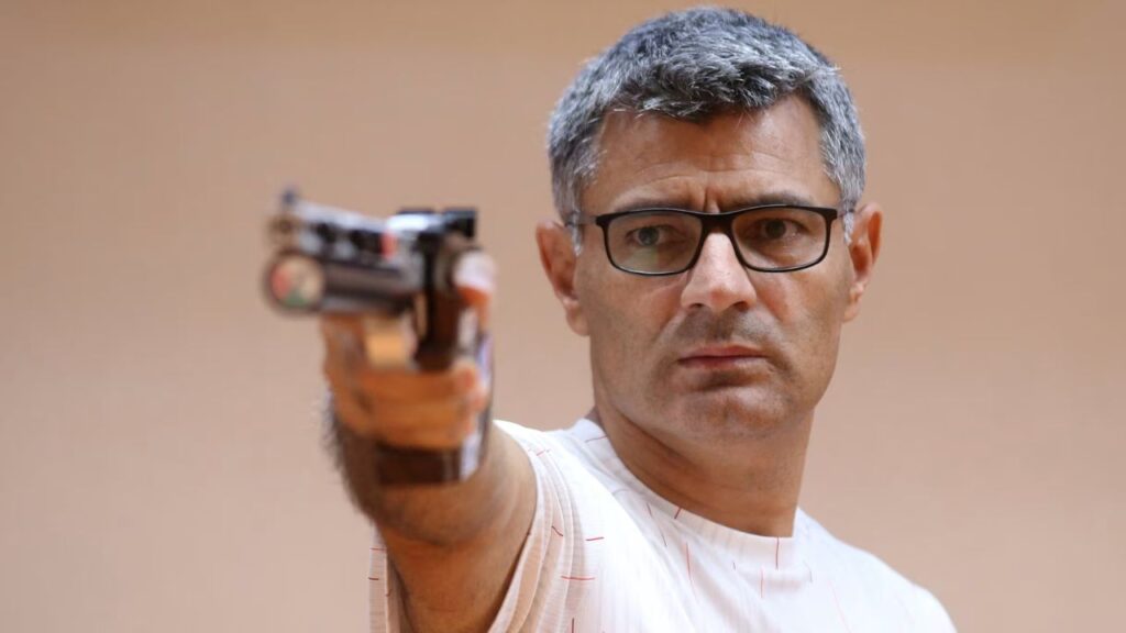 多くの射撃選手が身体を固定する専用ジャケットや特殊なゴーグルを使用する中で、ユスフ・ディケチさんは普段着に近いTシャツ姿で銀メダルを獲得しました。